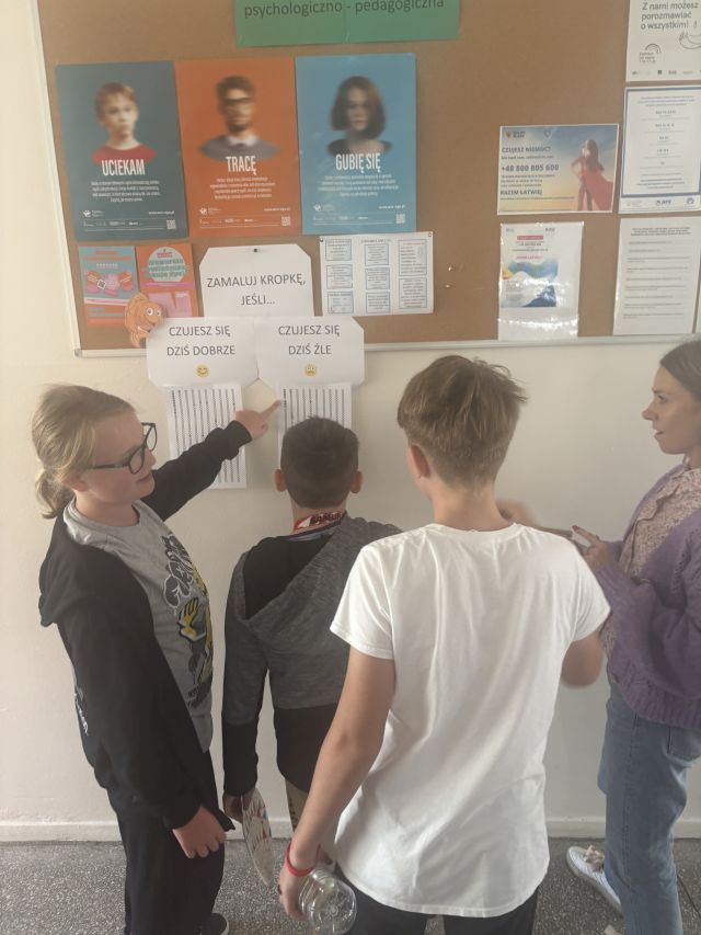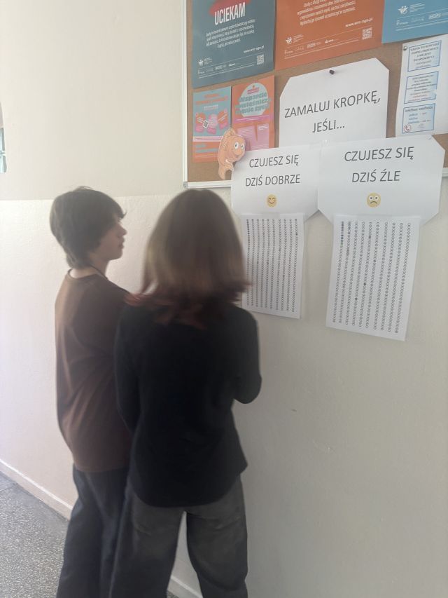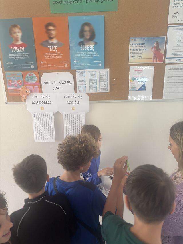 Uczniowie w tym dniu oczywiście ubrani byli w kropi, ale również mogli zaznaczyć na szkolnych korytarzach kolorując kropki, jak się tego dnia czuli.