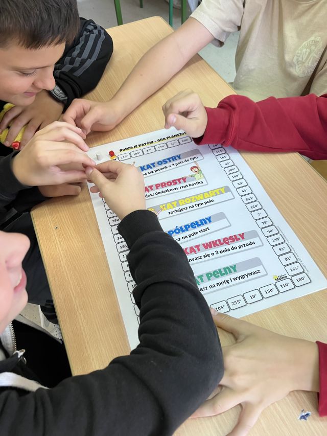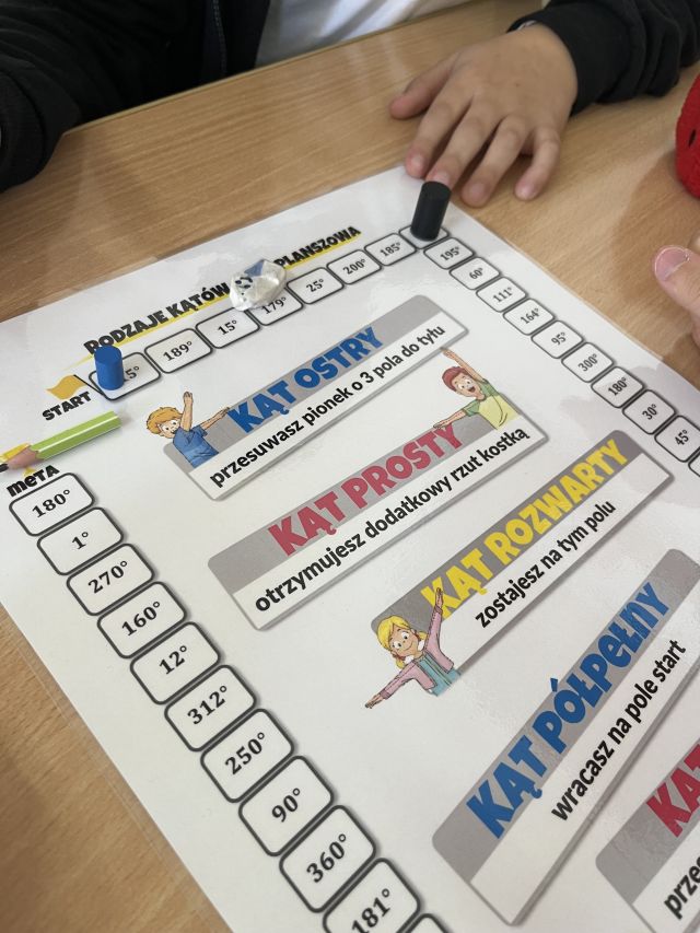 Klasa 6b miała natomiast okazję sprawdzić swoją wiedzę o rodzajach kątów, grając w autorską grę planszową, w której rzuty kostką, pola specjalne i wyzwania matematyczne tworzyły prawdziwie angażującą przygodę z geometrią.