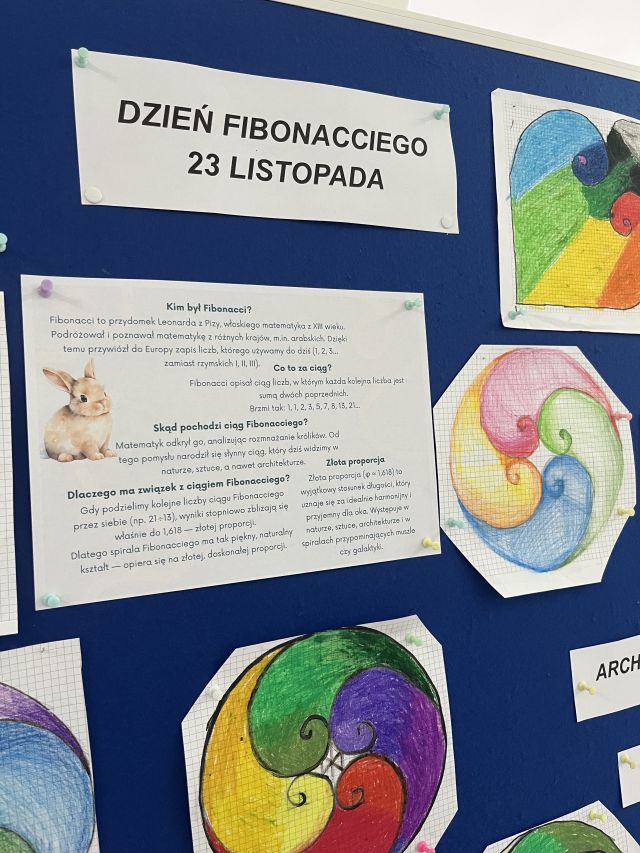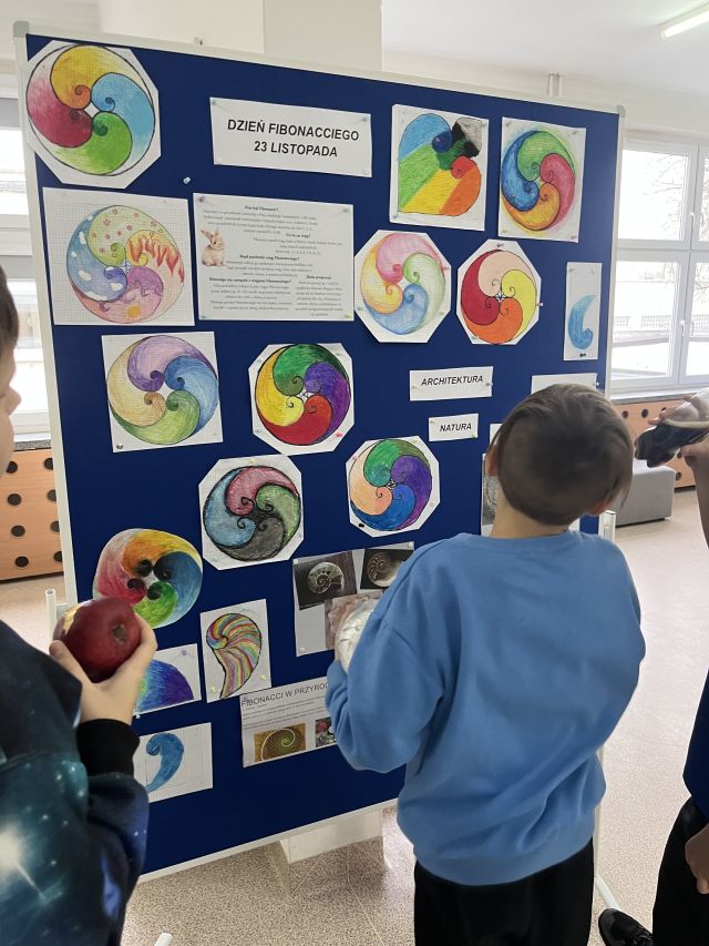 W poprzednim tygodniu uczniowie klas 5b i 6b świętowali Dzień Fibonacciego – czyli dzień, w którym matematyka stała się… sztuką! Dzieci poznały tajemniczy ciąg liczbowy Fibonacciego, odkryły, że kryje się on w naturze, a spirale nie są jedynie ozdobą ślimaka. Okazało się, że podobne kształty można znaleźć w szyszkach, słonecznikach, muszlach, a nawet w wirujących galaktykach. Matematyka nagle przestała być tylko zadaniem w zeszycie — zaczęła wyglądać jak prawdziwe dzieło sztuki!