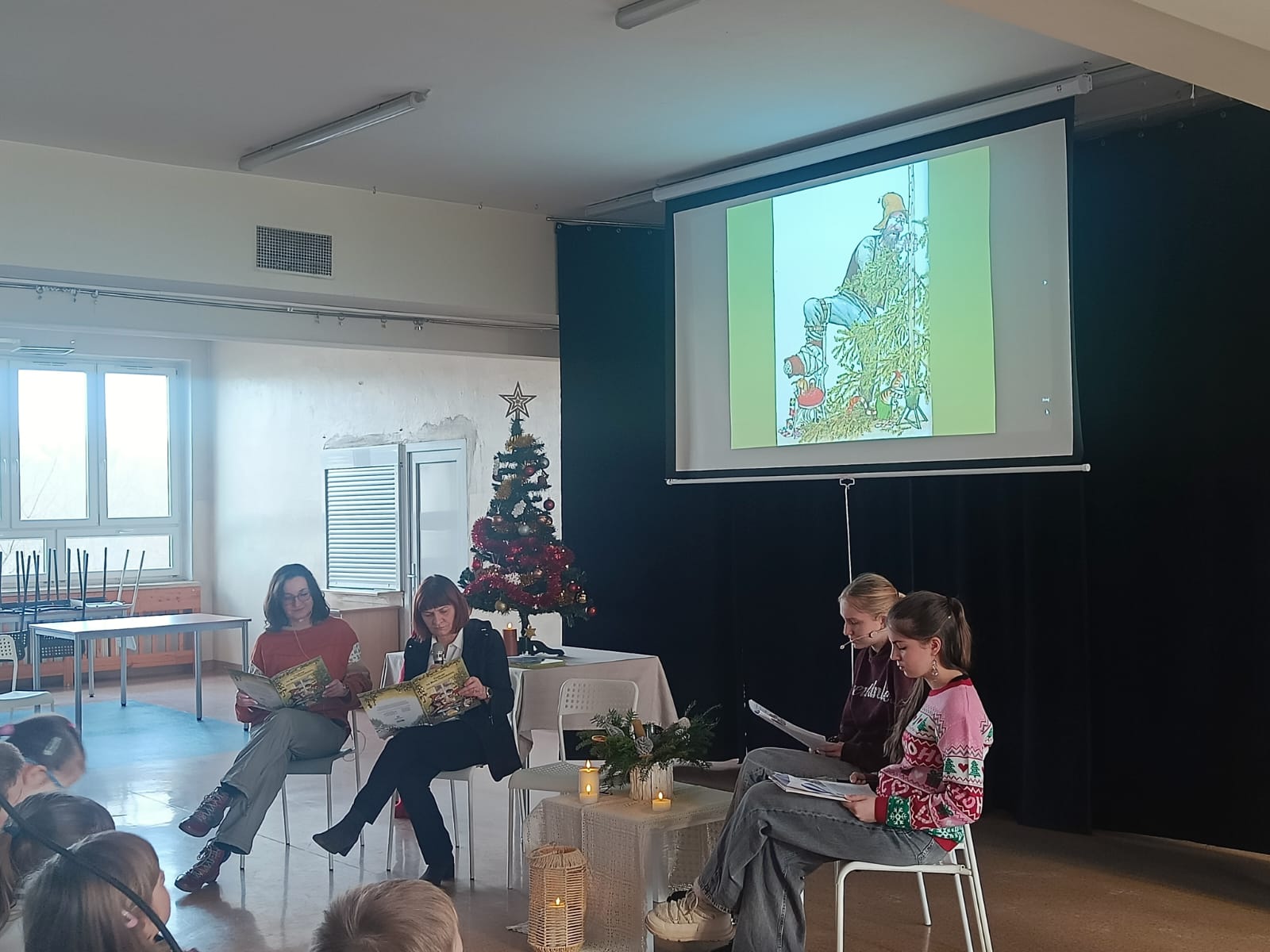 Bardzo się cieszymy, że przedświąteczne perypetie kota Findusa i jego opiekuna, staruszka Pettsona, przypadły młodym słuchaczom do gustu. Nie tylko za sprawą świetnej interpretacji lektorek. Duża w tym zasługa wspaniałych ilustracji do książki, które uczniowie mogli podziwiać w trakcie słuchania.