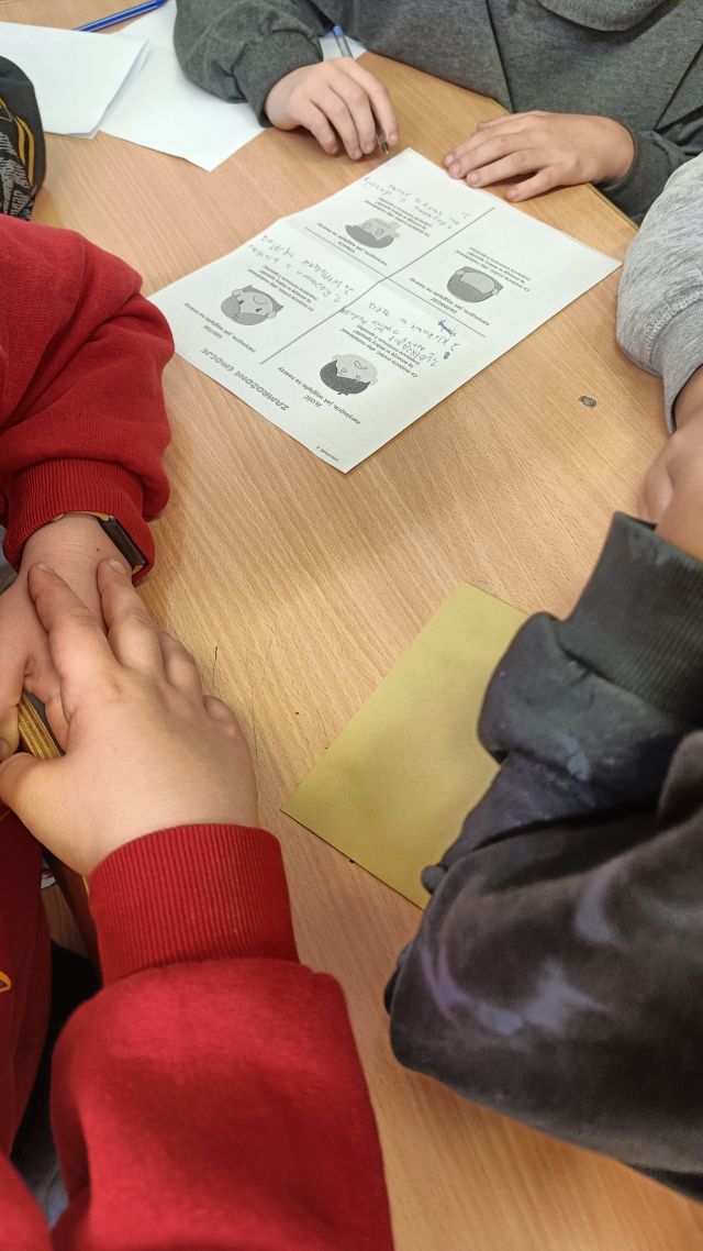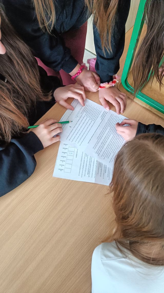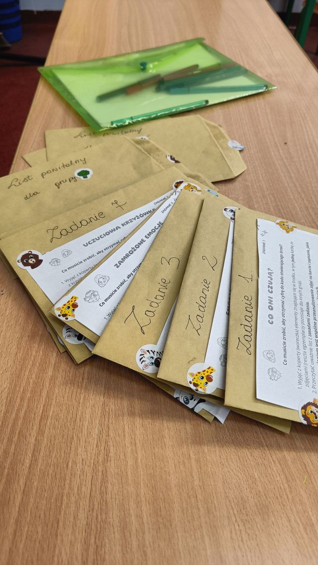 Każda zagadka poruszała inny aspekt funkcjonowania emocjonalnego – od rozpoznawania i nazywania emocji, przez sposoby radzenia sobie ze stresem, aż po budowanie pozytywnych relacji z innymi. Uczniowie, pracując w grupach, wspólnie poszukiwali rozwiązań, co sprzyjało integracji oraz rozwijaniu kompetencji społecznych.
