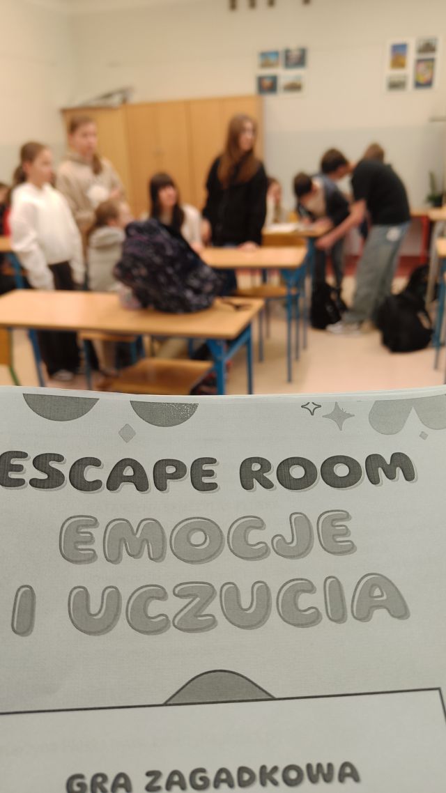 Z okazji Światowego Dnia Zdrowia w ramach edukacji zdrowotnej uczniowie wzięli udział w zabawie pt. „Emocjonalny escape room”, który cieszył się dużym zainteresowaniem wśród uczniów. W specjalnie przygotowanej sali uczestnicy mieli okazję zmierzyć się z 10 zagadkami związanymi ze zdrowiem psychicznym oraz szeroko rozumianymi emocjami. Zadania wymagały nie tylko logicznego myślenia, ale także refleksji nad własnymi uczuciami, umiejętności współpracy oraz empatii.