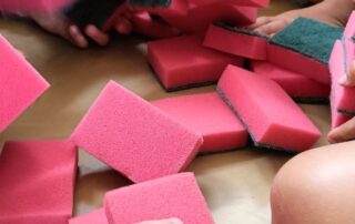 Zabawy odbywały się w grupach i zawierały elementy aktywności sensorycznych. Wykorzystaliśmy do nich proste materiały: gąbki do mycia naczyń, siatkę, folię malarską oraz wodę. Uczniowie z dużym zaangażowaniem podejmowali proponowane zadania, które wywoływały wiele uśmiechu i pozytywnych emocji. Ćwiczenia pozwoliły na rozwijanie współpracy, kreatywności oraz integrację całej społeczności klasowej.
