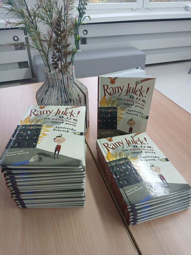 Serdecznie dziękujemy za podarowanie bibliotece pakietu książek autorstwa Agnieszki Frączek i Joanny Rusinek „Rany Julek! O tym, jak Julian Tuwim został poetą”. Z lektur będą mogły skorzystać dzieci z klasy 3 A a w przyszłości i inni uczniowie. Bardzo dziękujemy za wzbogacenie naszego księgozbioru o te piękne i bardzo wartościowe książki.