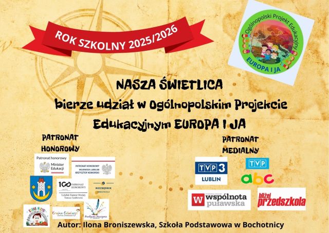 Nasza świetlica w roku szkolnym 2025/2026 realizuje zadania Ogólnopolskiego Projektu Edukacyjnego "Europa i ja" . Celem projektu jest przybliżenie [...]